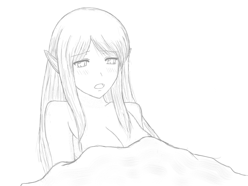 初めはすっぽんぽんだったが、公序良俗の精神で肝心なところが見えなくなった。コラの種族はまぁ 簡単にいえばエルフだから未来型のエルフみたいな感覚でもう一度描いてみたい。