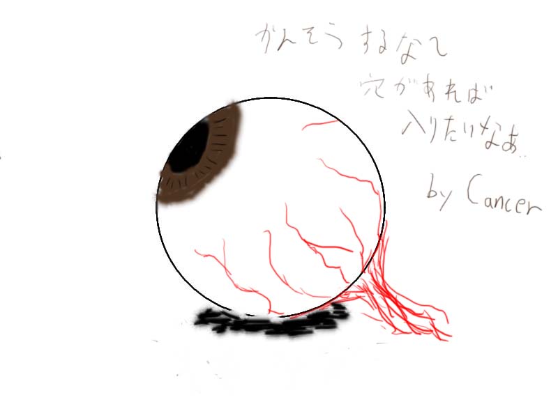 気持ち悪い・・・瞳というより 眼球である。横の文字も意味不明である。ちなみにCancerとは私の昔のHN